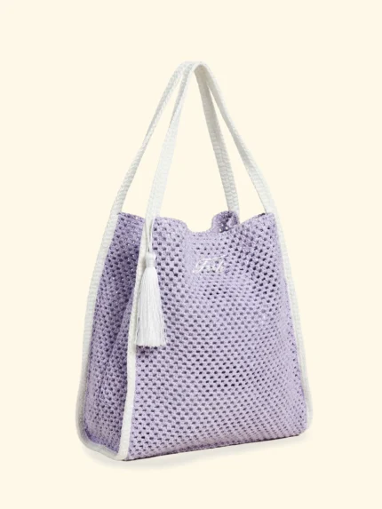 BORSA MARE EFFEK IN RAFIA NON FODERATA RETTANGOLARE COLOR LILLA CON PROFILI BIANCHI