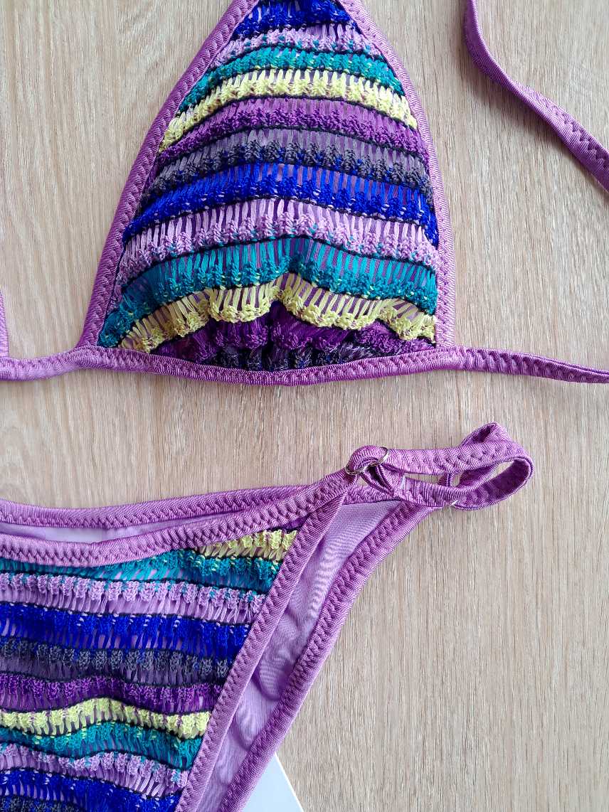 COSTUME DONNA ME FUI TRIANGOLO TESSUTO LAVORATO A RIGHE LILL, VIOLA E VERDE