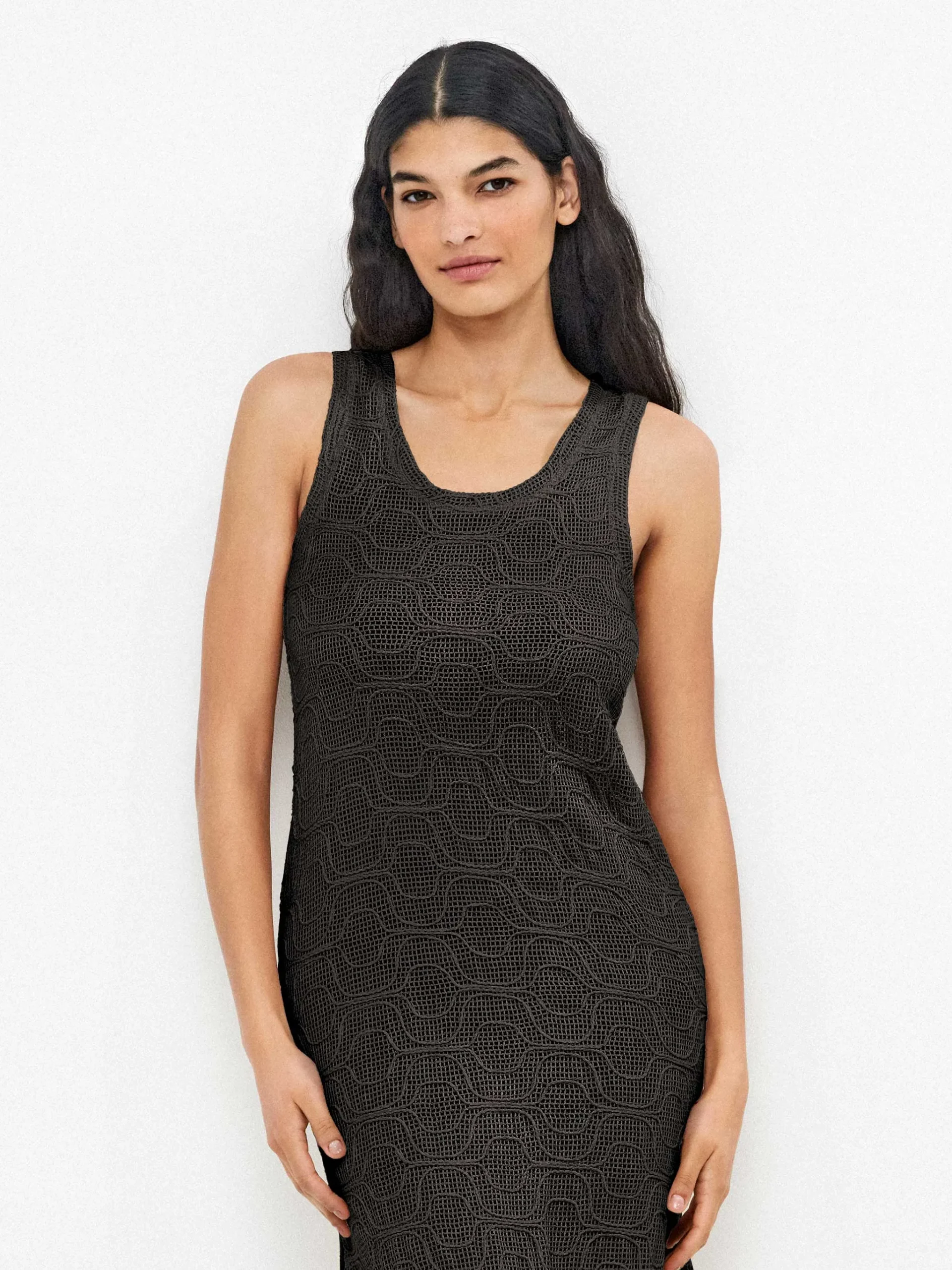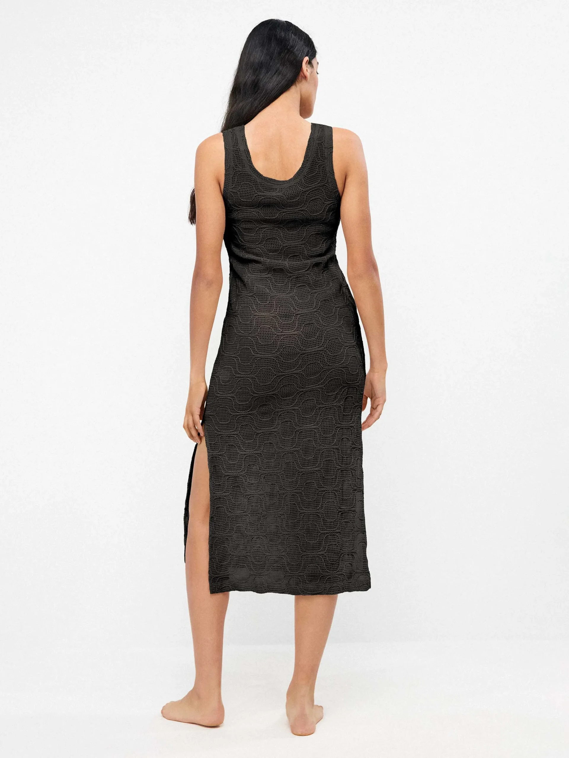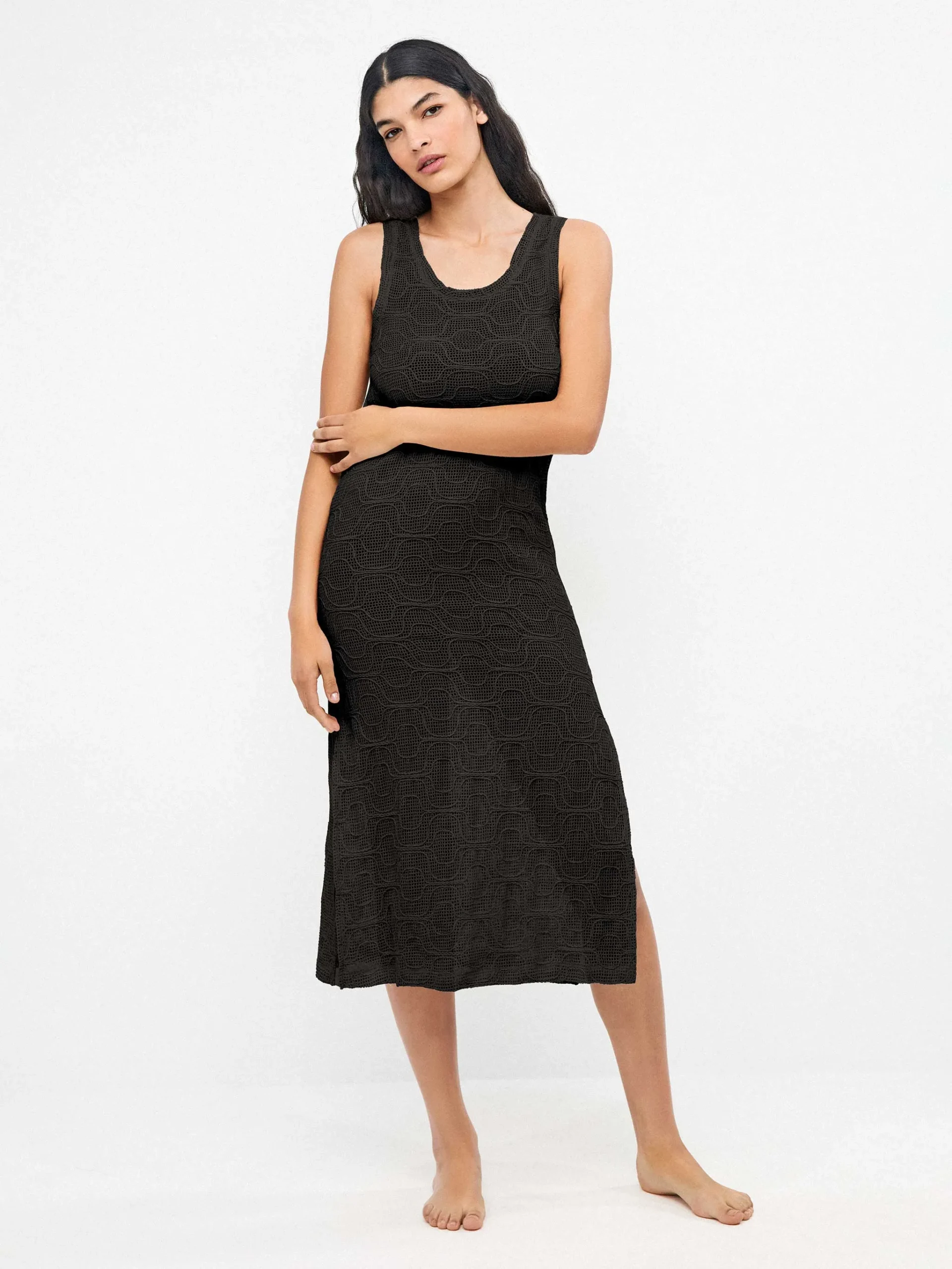 ABITO A CANOTTA GISELA LUNGO NERO TRAFORATO CON SPACCHI LATERALI