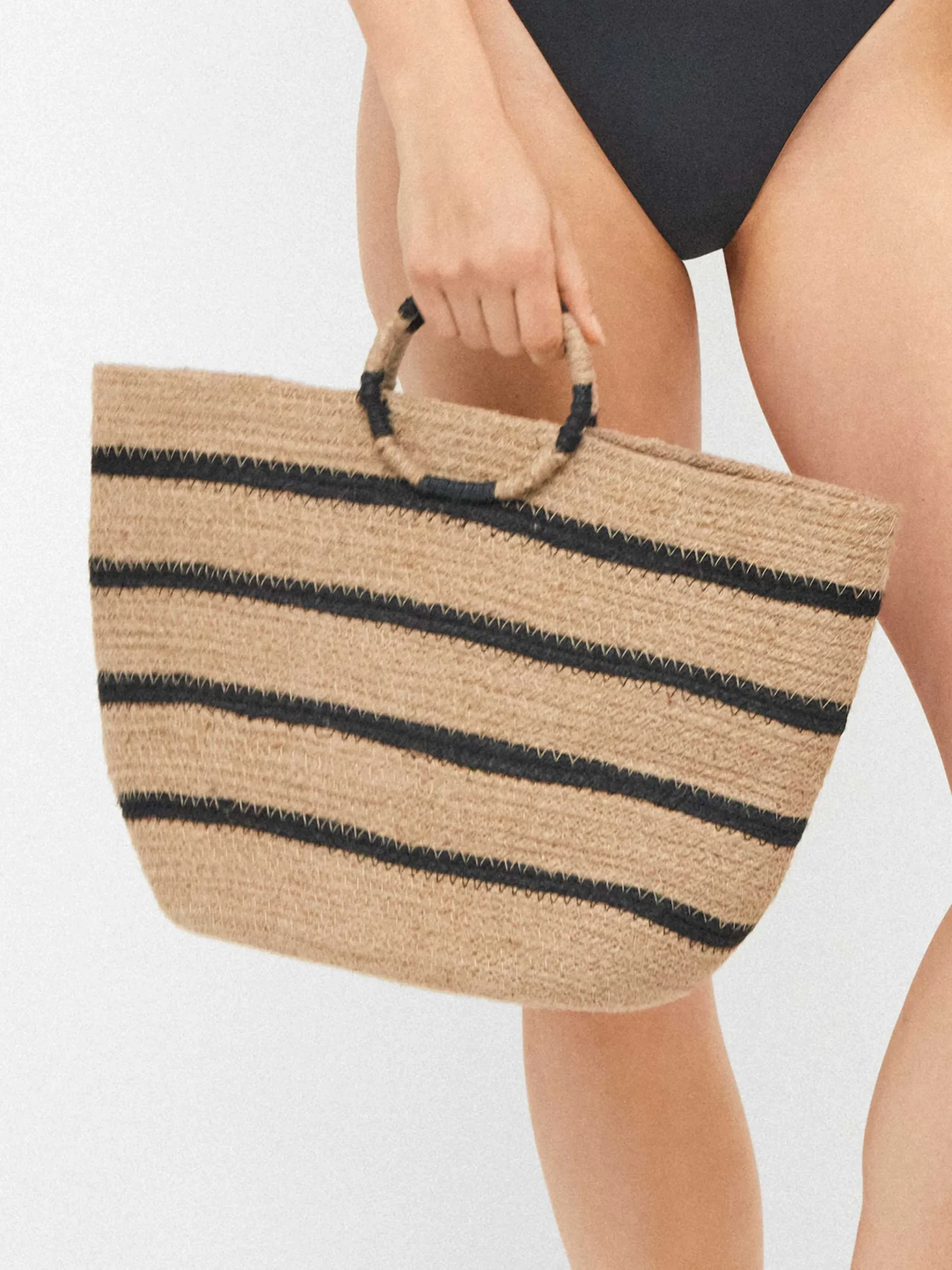 BORSA MARE GISELA IN JIUTA A RIGHE NERE E NATURALE