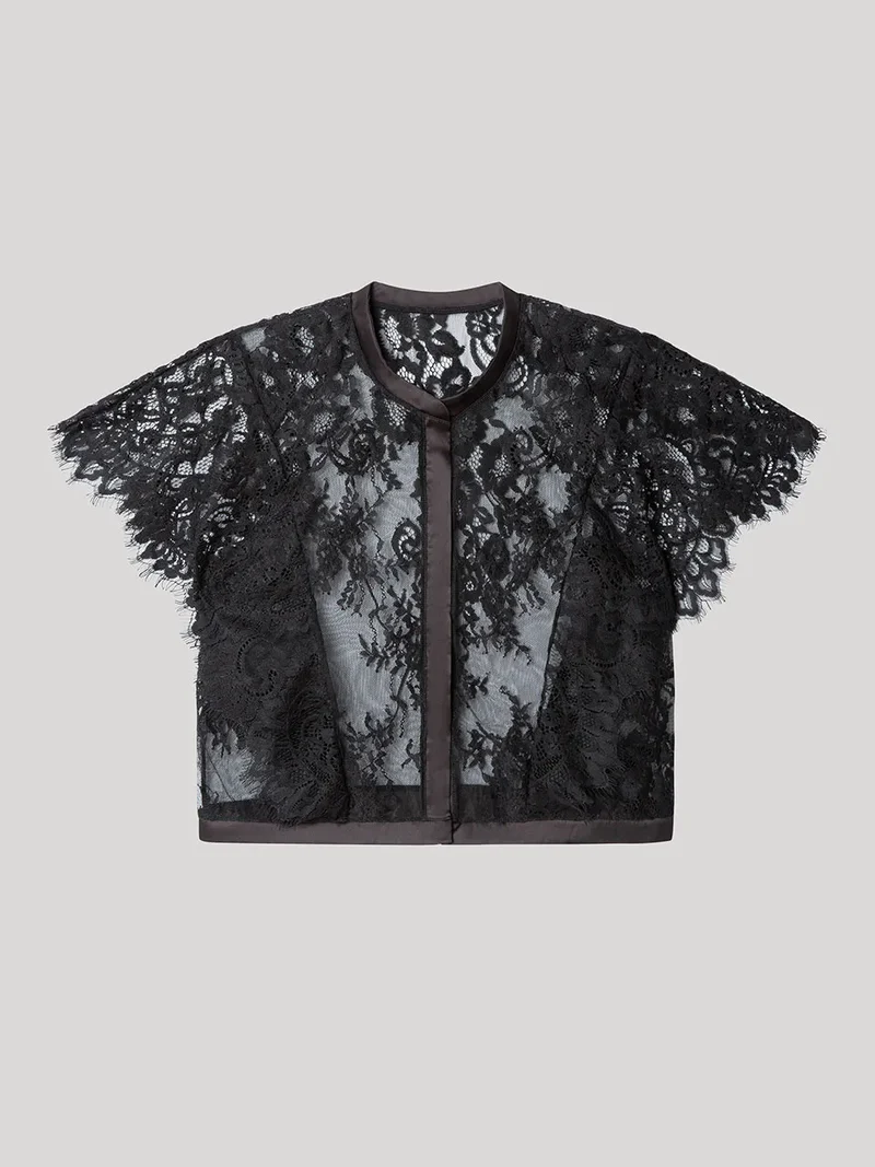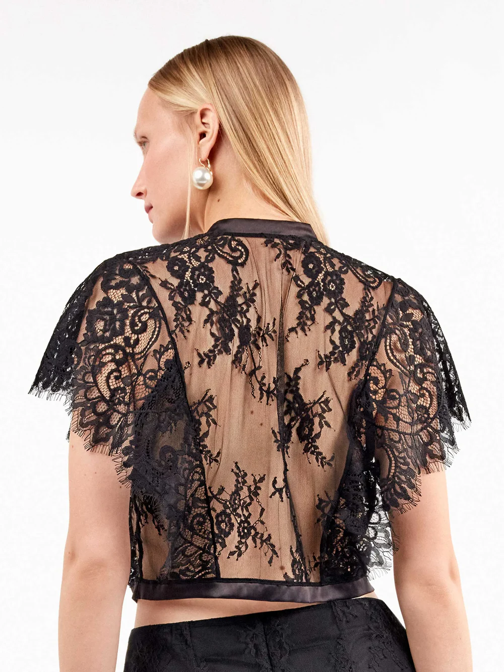 CAMICETTA IN PIZZO E RASO NERO MEZZA MANICA GISELA