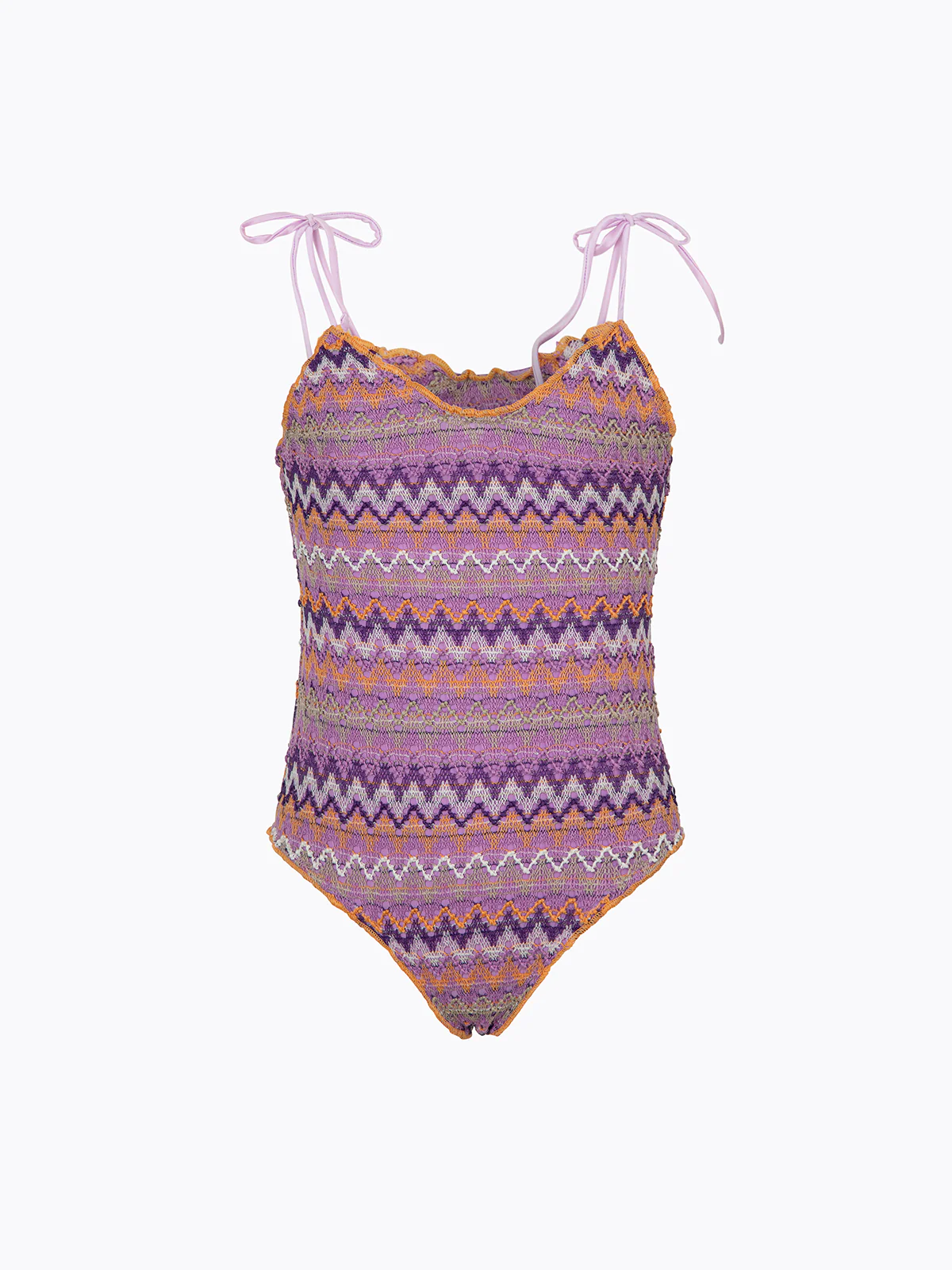 COSTUME BIMBA EFFEK INTERO NEL CLASSICO MODELLO ARRICCIATO TESSUTO TRAFORATO COLORATO CON BASE LILLA
