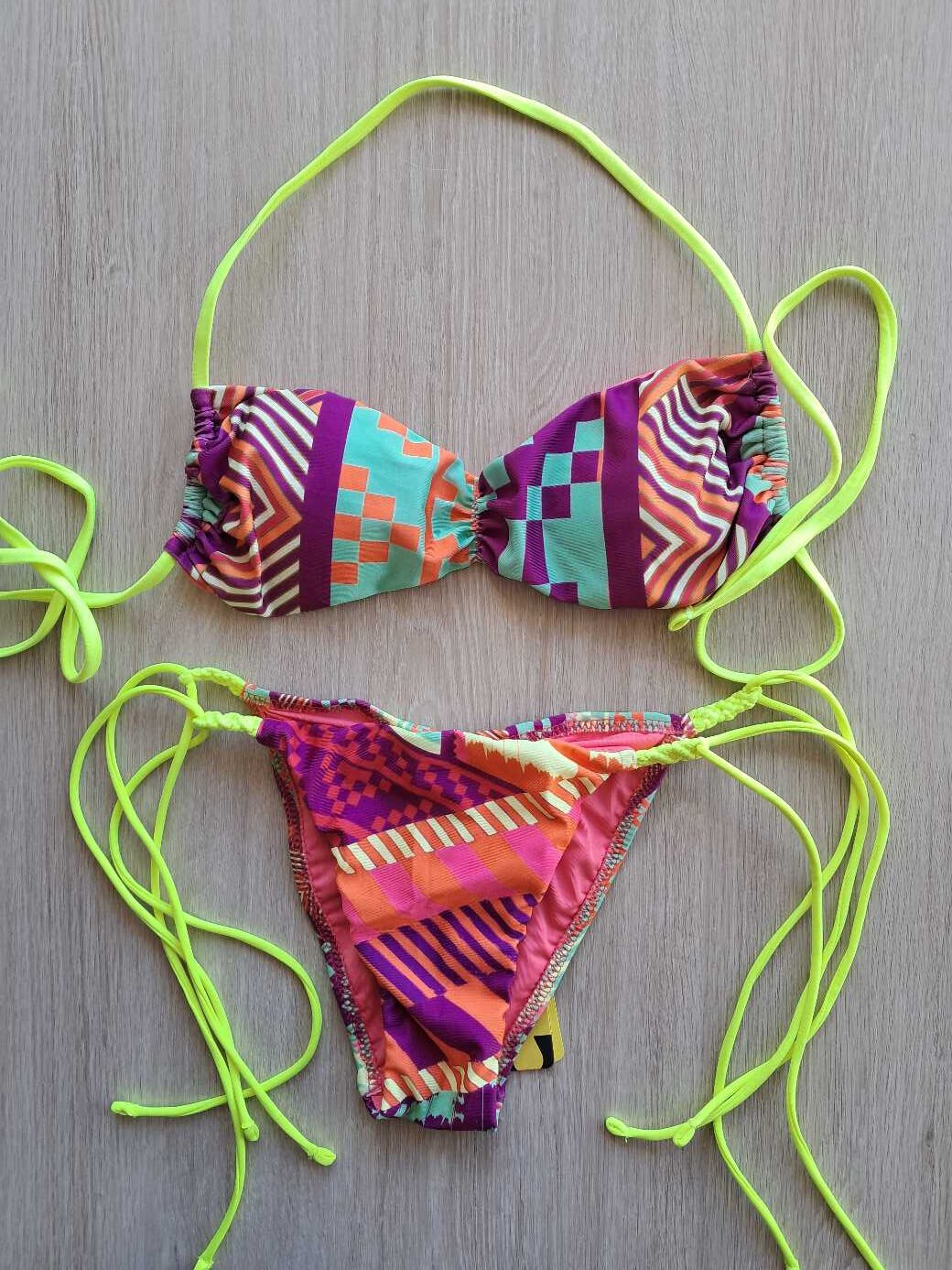 COSTUME DONNA EFFEK TOP/FASCIA DAI COLORI ACCESI CON LACCETTI GIALLO FLUO