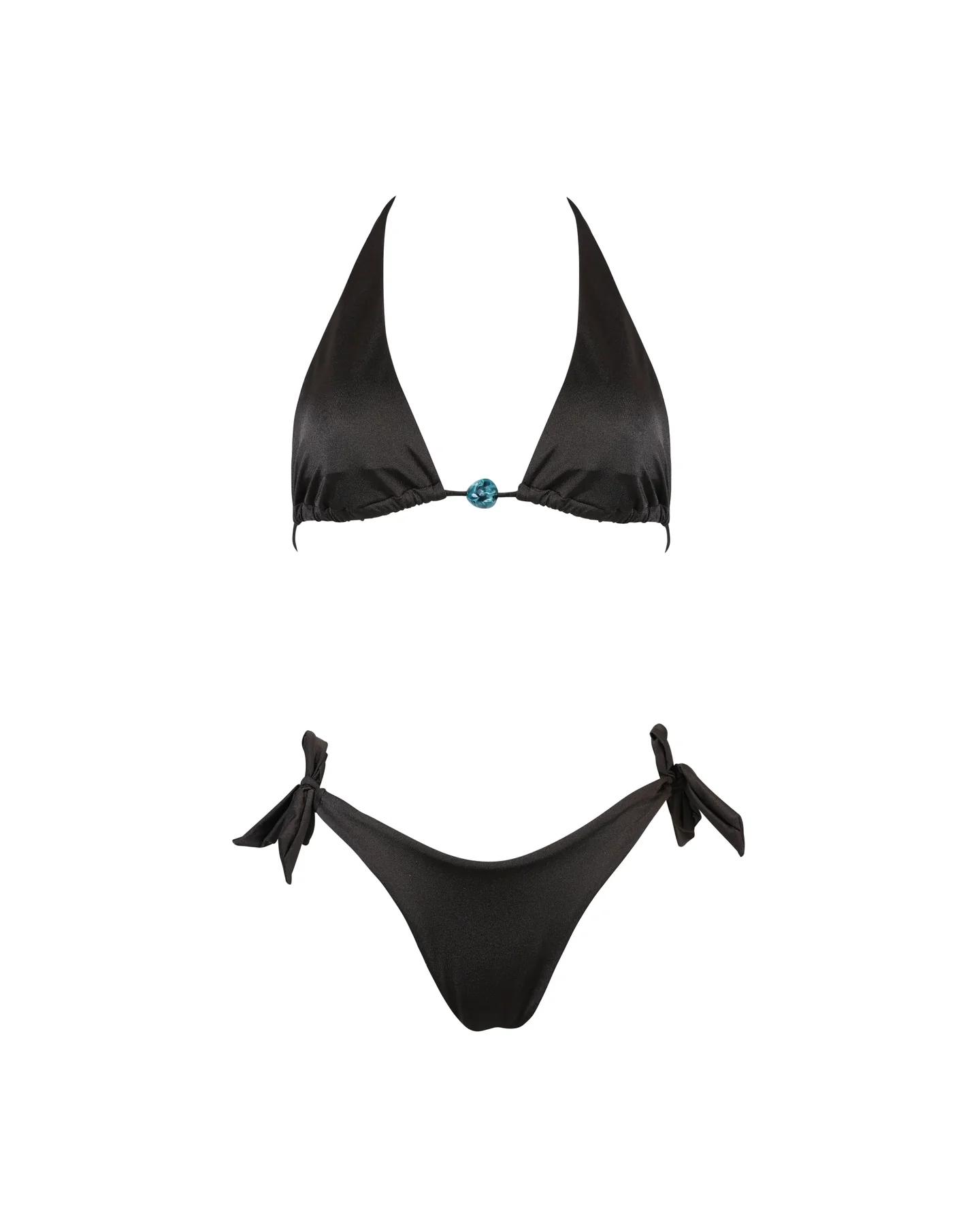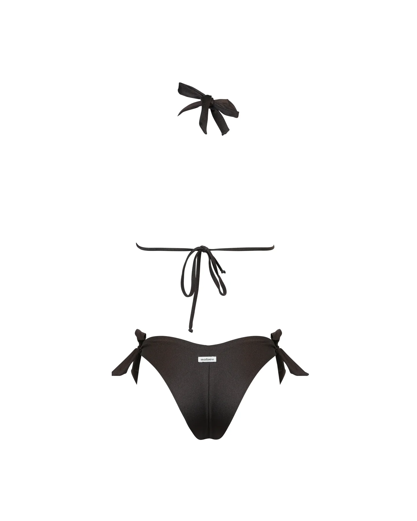 COSTUME DONNA MATINEE TRIANGOLO ALTO CON DETTAGLIO TRA LE COPPE LYCRA LUCIDA MARRONE