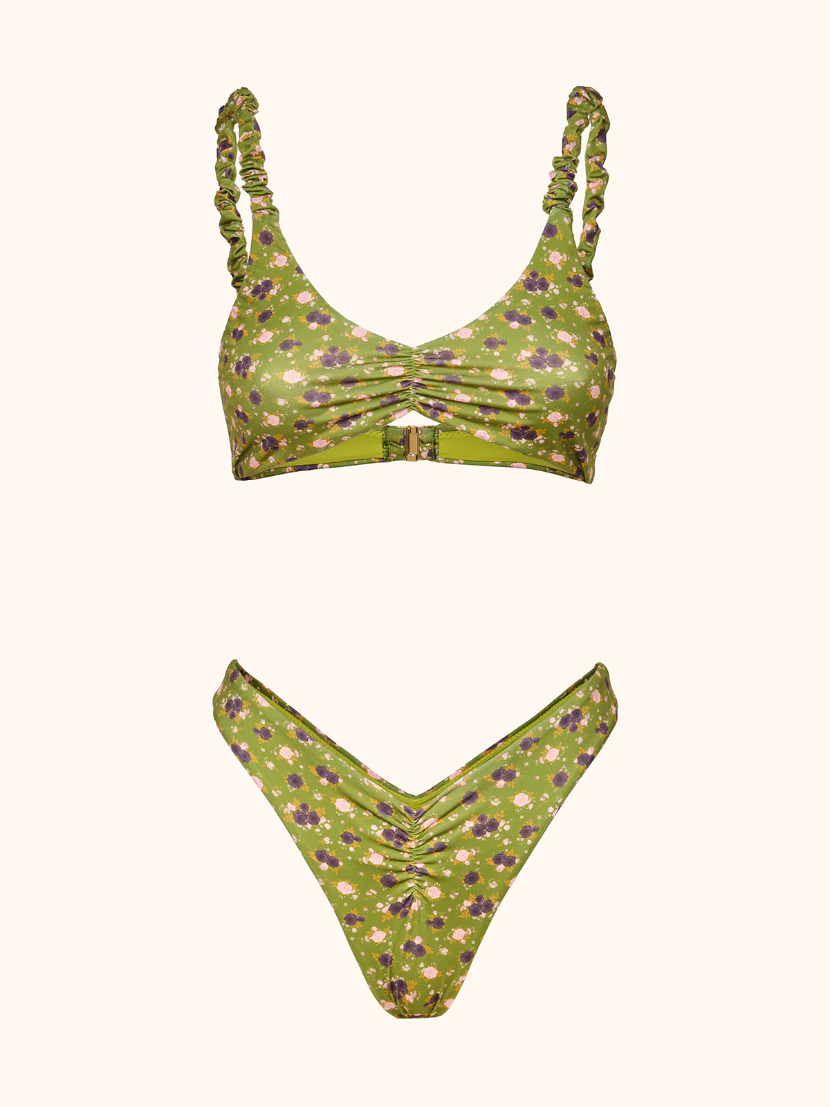 COSTUME DONNA ME FUI BRASSIERE CLASSICA BRETELLINA ARRICCIATA VERDE CON FIORELLINI