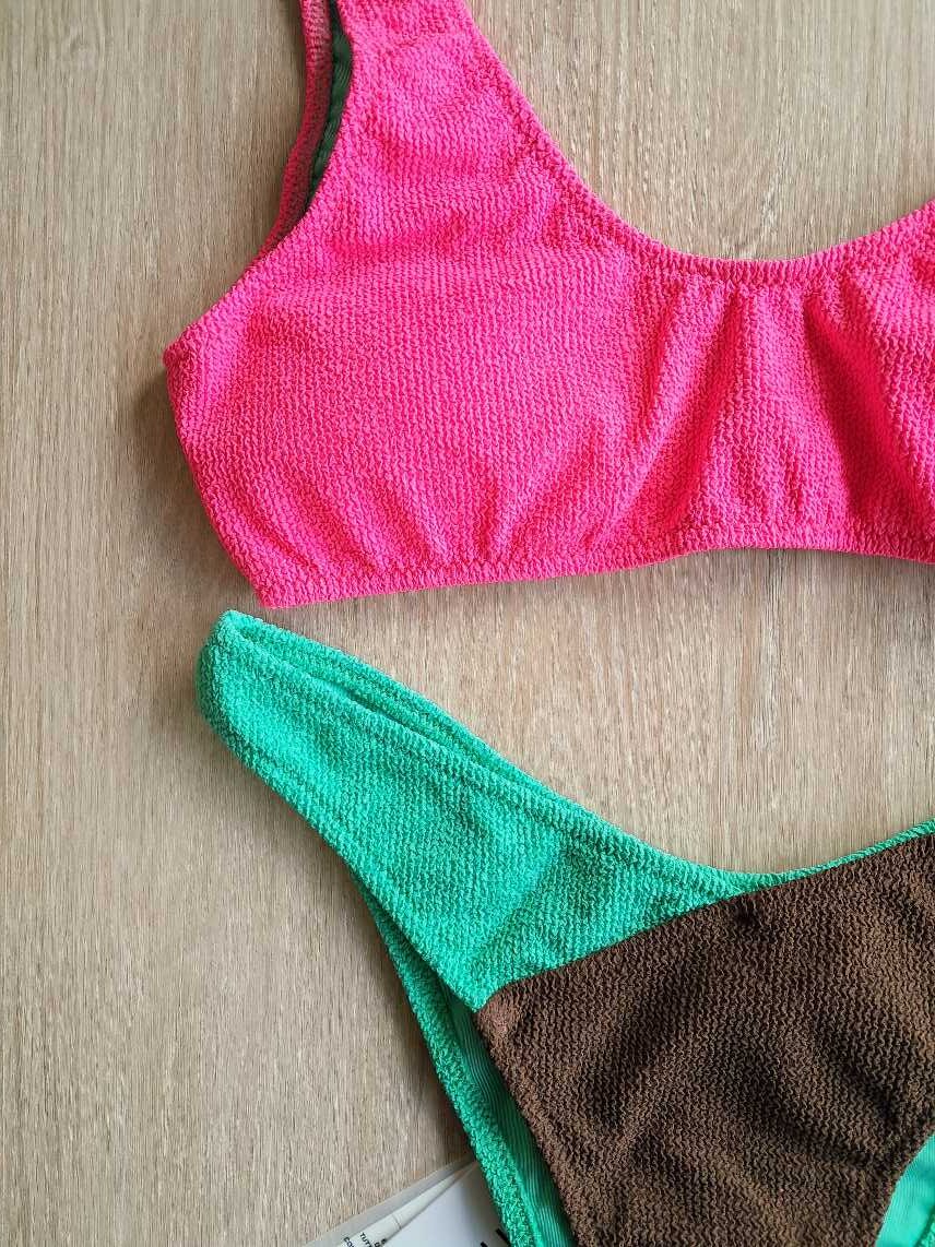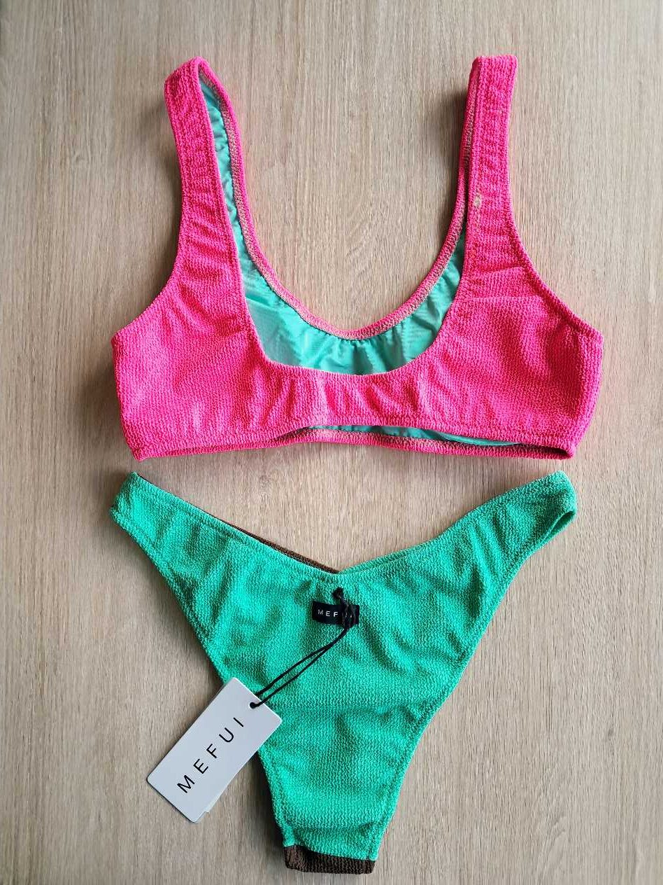 COSTUME DONNA ME FUI TOP TESSUTO A COSTINE VERDE ACQUA, FUCSIA E MARRONE