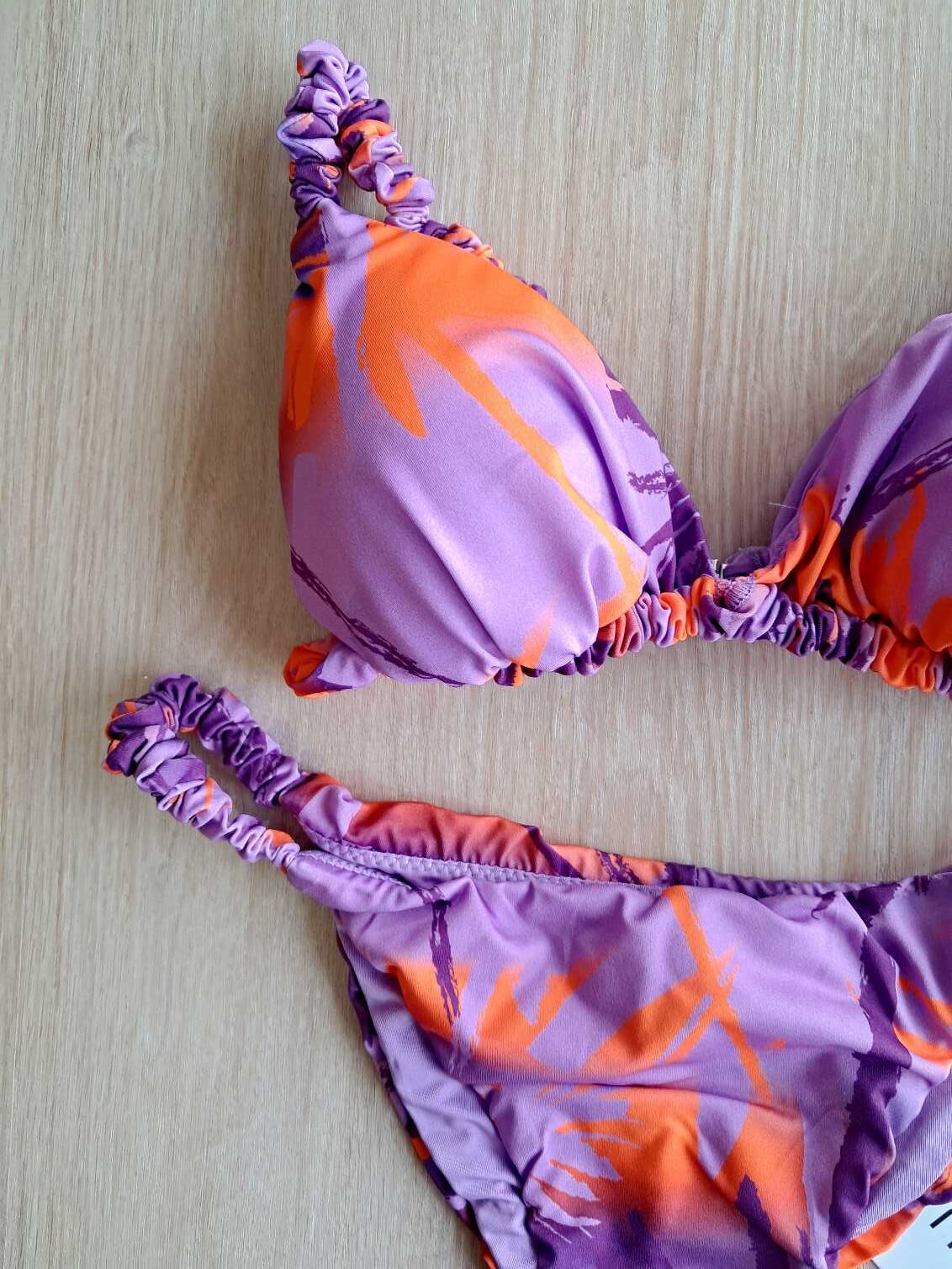 COSTUME DONNA ME FUI TRIANGOLO CLASSICA BRETELLINA ARRICCIATA LILLA E FANTASIA VIOLA E ARANCIO