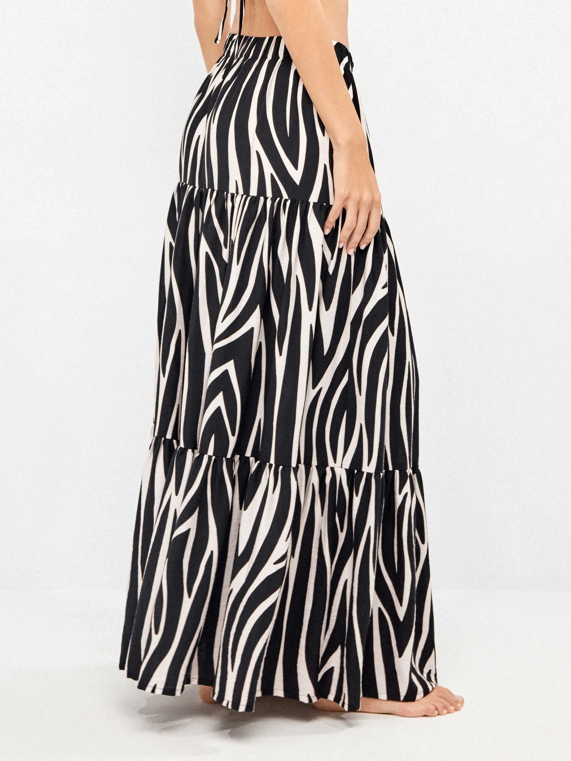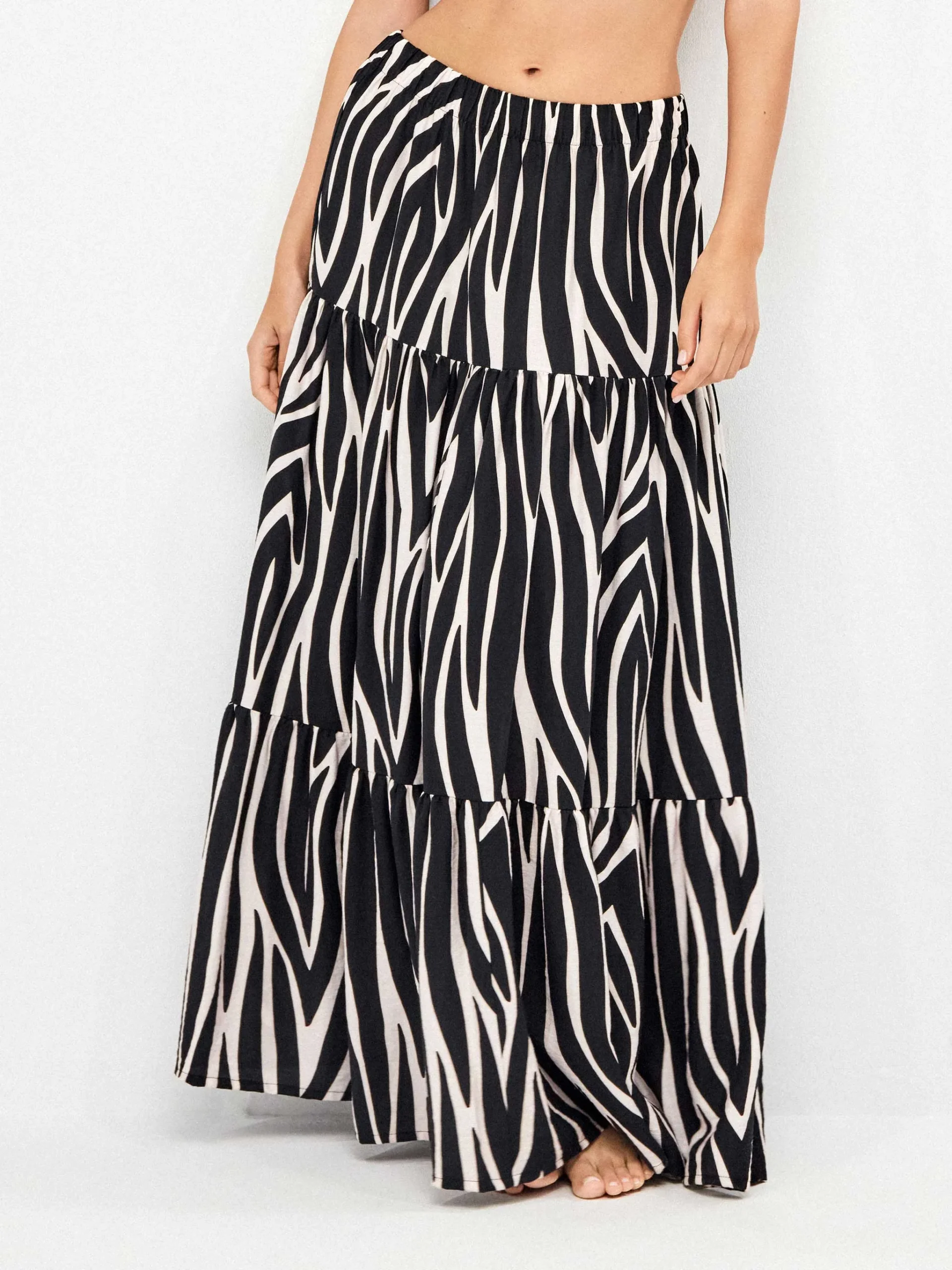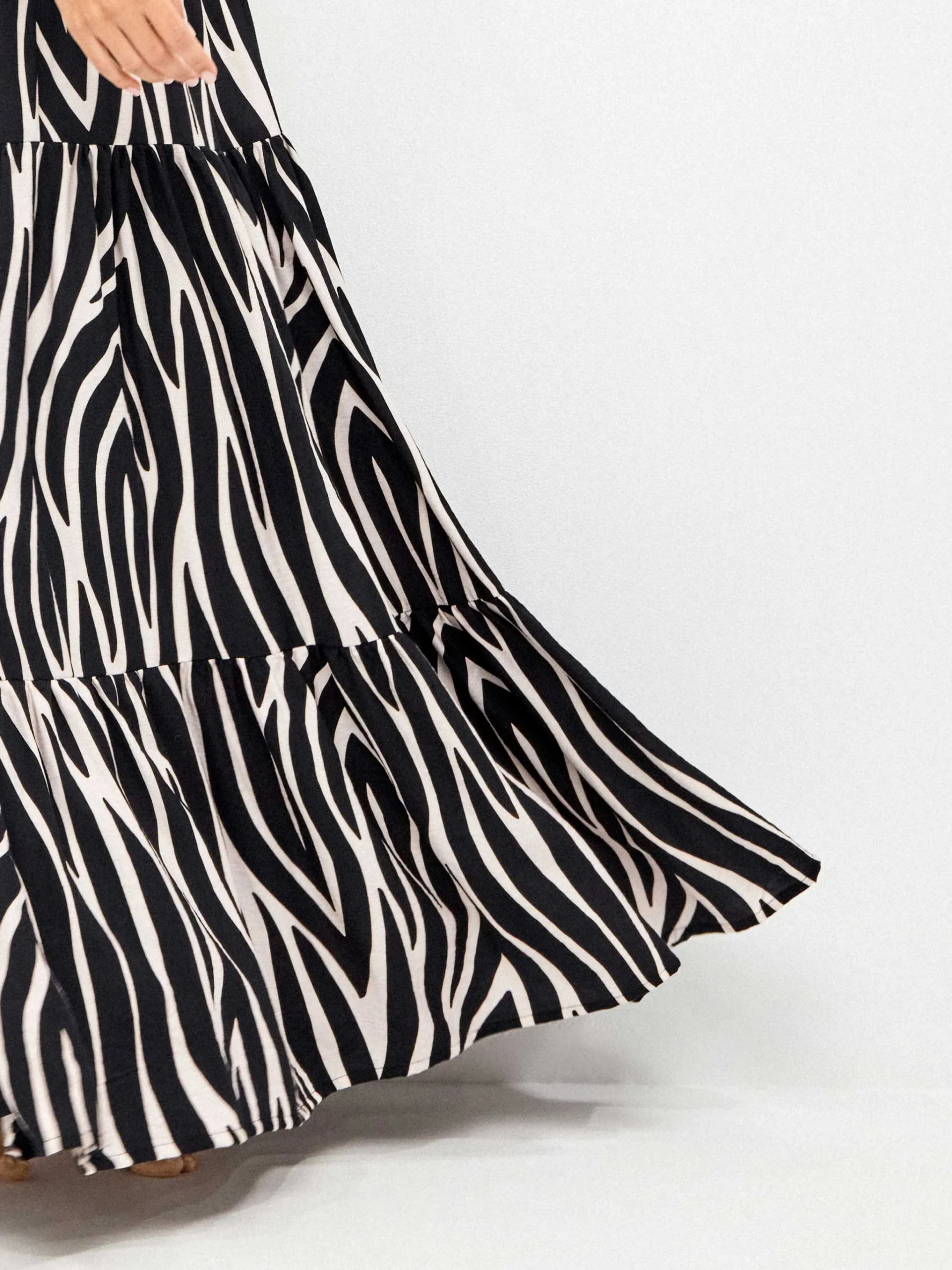 GONNA LUNGA GISELA IN VISCOSA A FALDE FANTASIA ZEBRATA