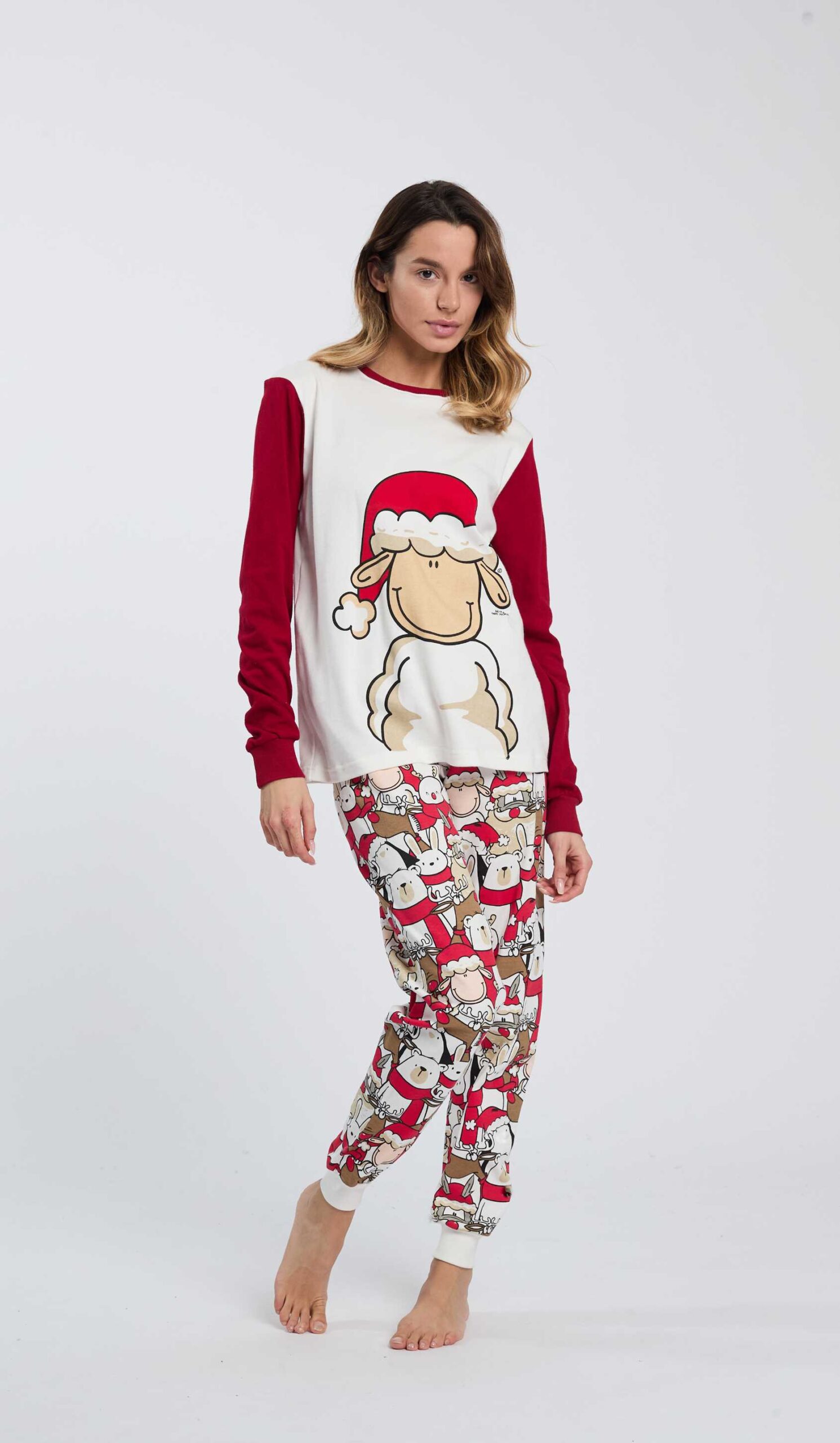 PIGIAMA DONNA HAPPY PEOPLE NATALIZIO BIANCO E ROSSO CON STAMPE NATALIZIE