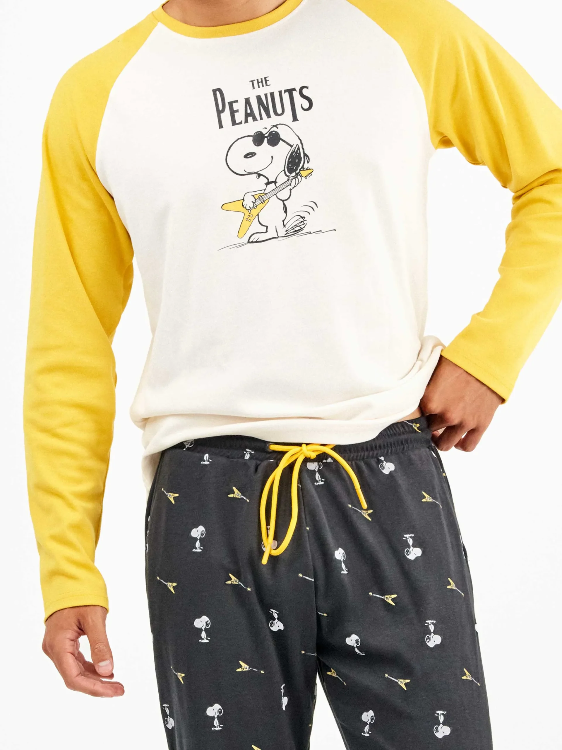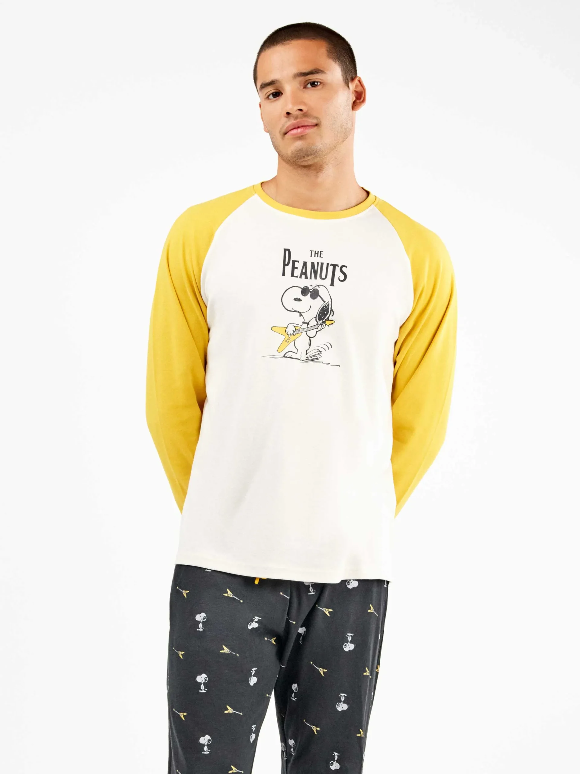 PIGIAMA UOMO GISELA IN CALDO COTONE CON STAMPA SNOOPY E MANICA GIALLA