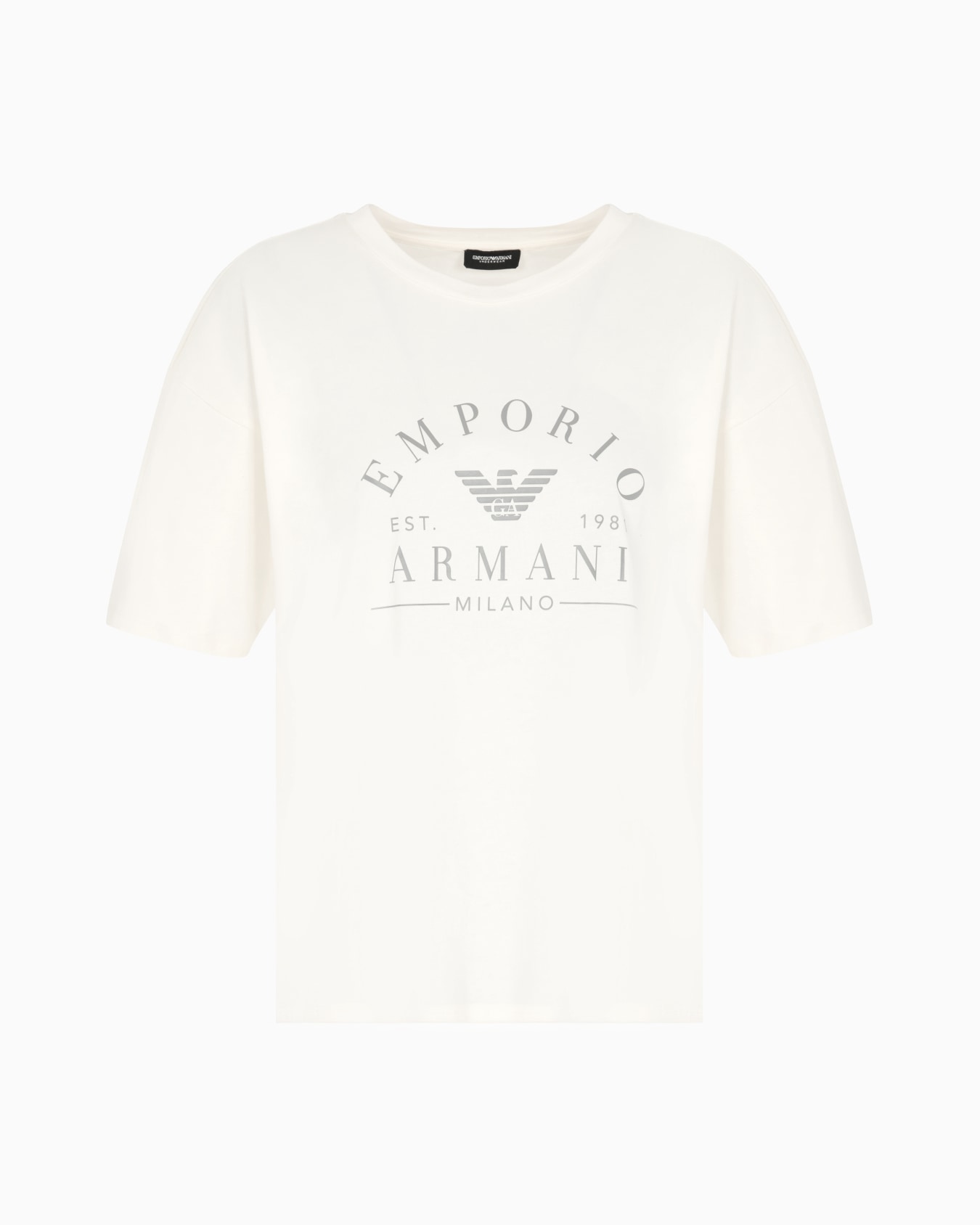 TSHIRT DONNA EMPORIO ARMANI LARGA COLOR AVORIO CON LOGO GRIGIO CHIARO