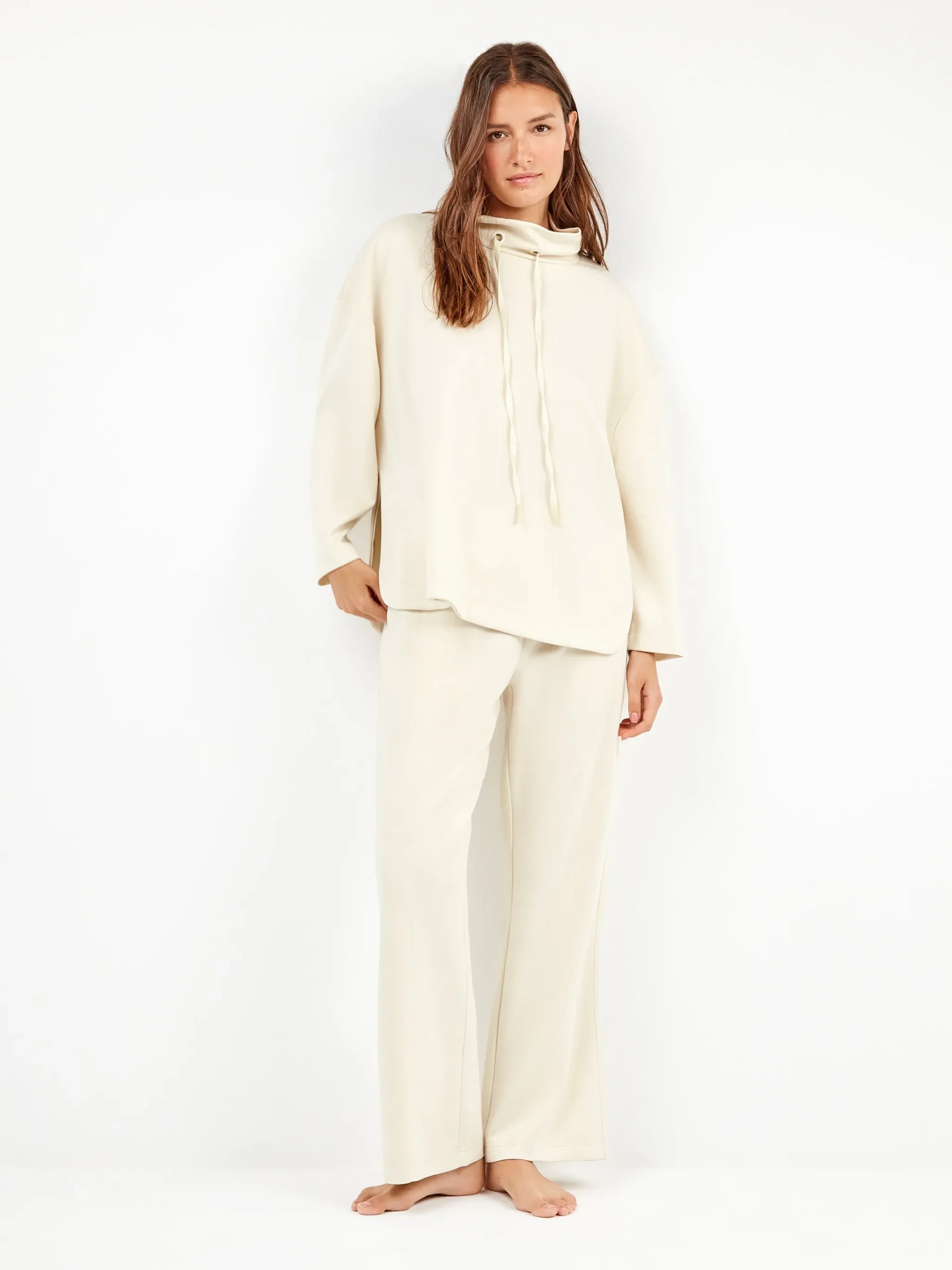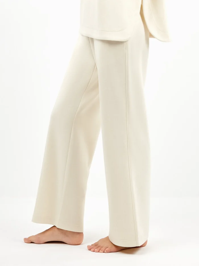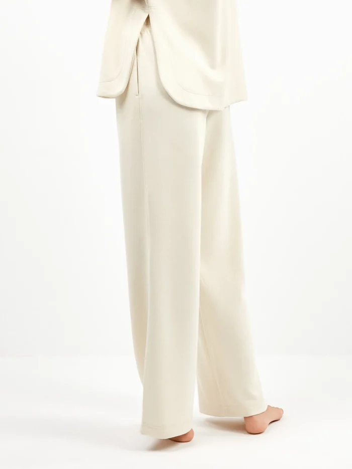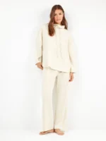 TUTA DONNA GISELA BEIGE CON MAGLIA CON MEZZO COLLO LARGO E PANTALONE A PALAZZO