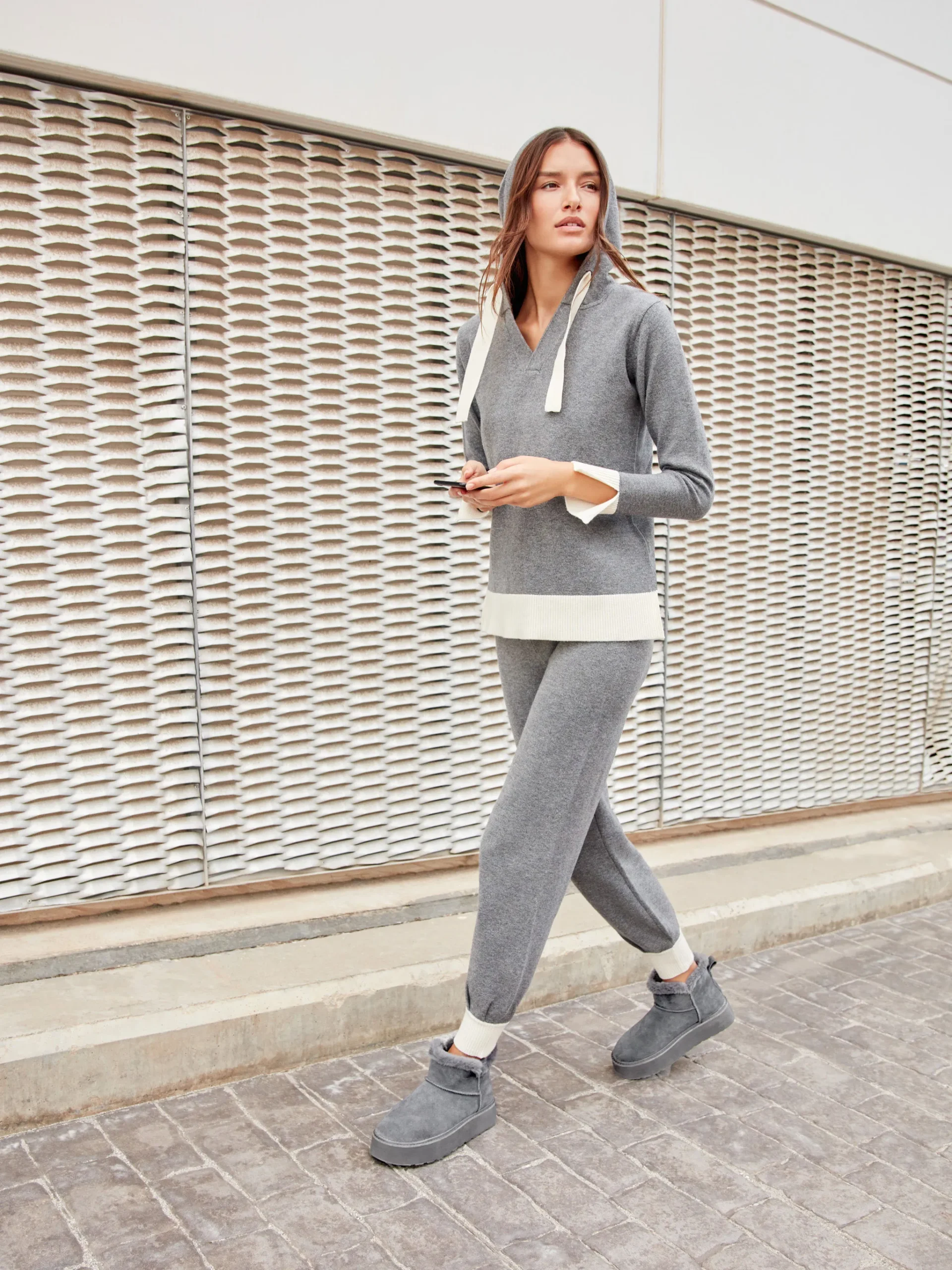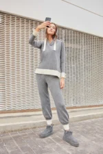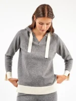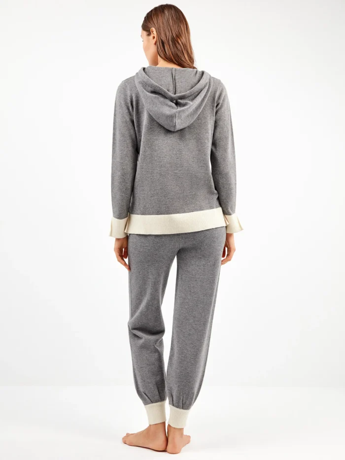 TUTA DONNA GISELA IN MAGLINA GRIGIO SCURO MAGLIA CON CAPPUCCIO E PANTALONE DRITTO CON POLSINO
