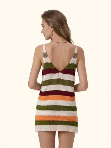 VESTITO ME FUI IN MAGLIA CORTO A RIGHE AZZURRE, MARRONE E BEIGE